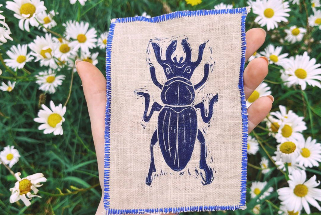 Carve & stamp a patch of queer history, surrounded by botanicals